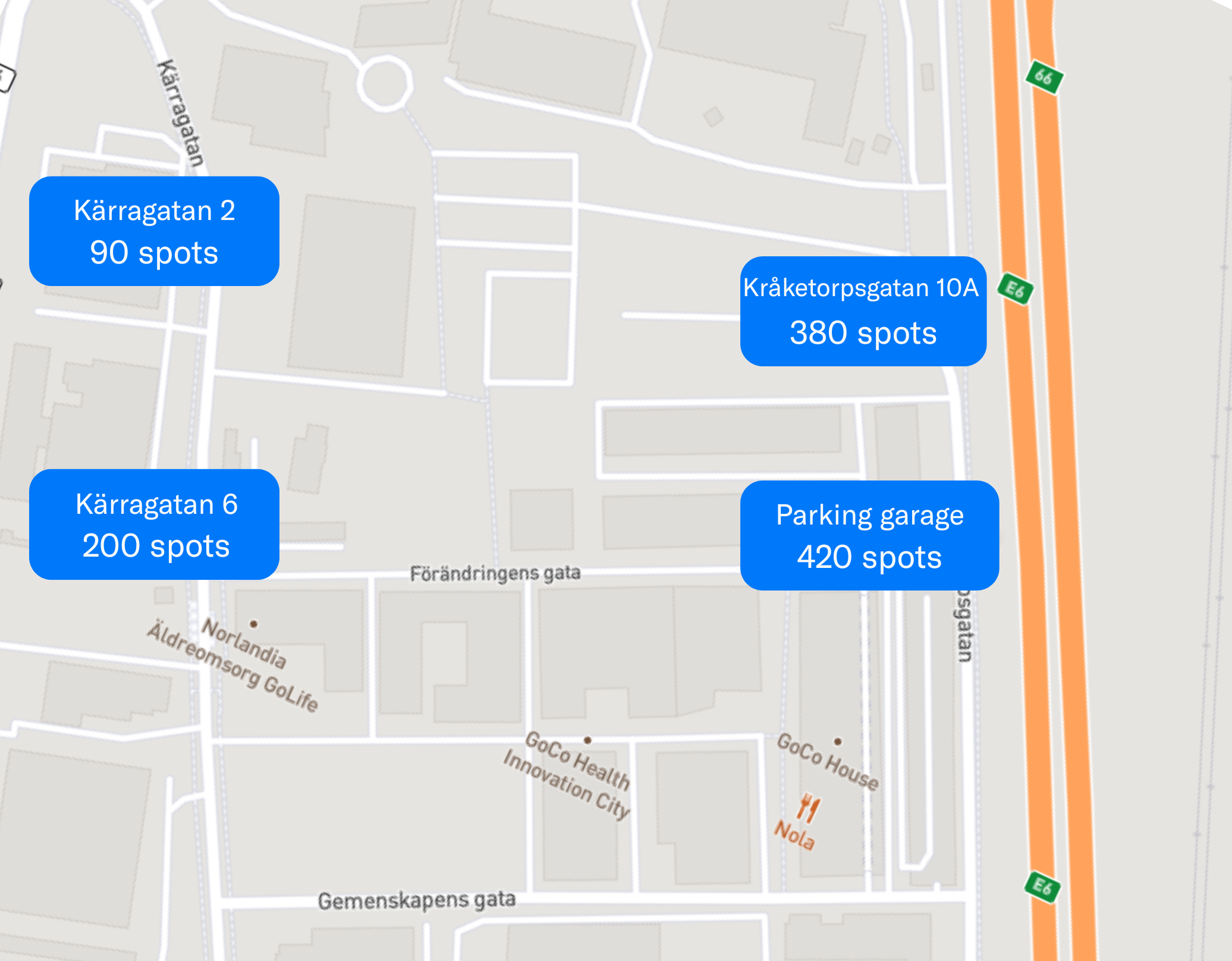 Parking permits: A parking permit grants access to all parking areas within the GoCo Health Innovation City area and can be conveniently purchased through the website: www.molndalsparkering.se/goco